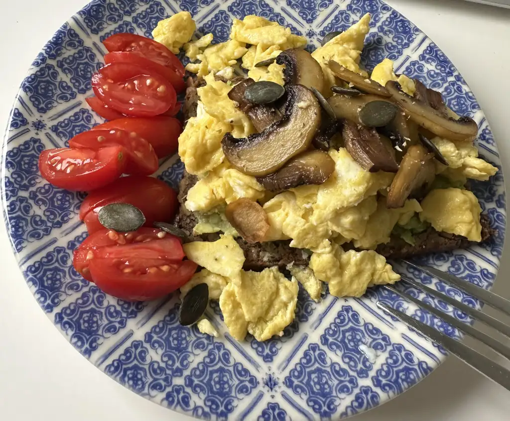 Sabah: 2 haşlanmış yumurta, yarım avokado, 3 çeri domates, 1 mantar