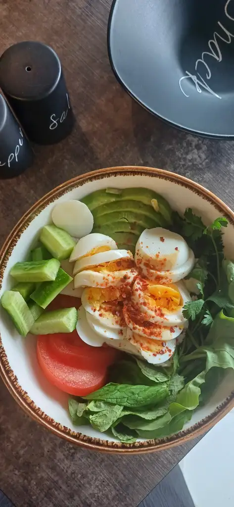 Bir domates bir salatalık 2 sivri biber 2 yumurta yarım avokado ve peynir