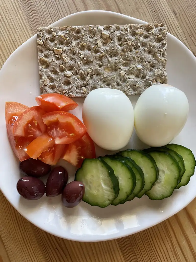 Kahvaltı: salatalık hindi füme 1 dilim yumurtalı ekmek zeytin ve biraz patates kızartması aldım tabağıma