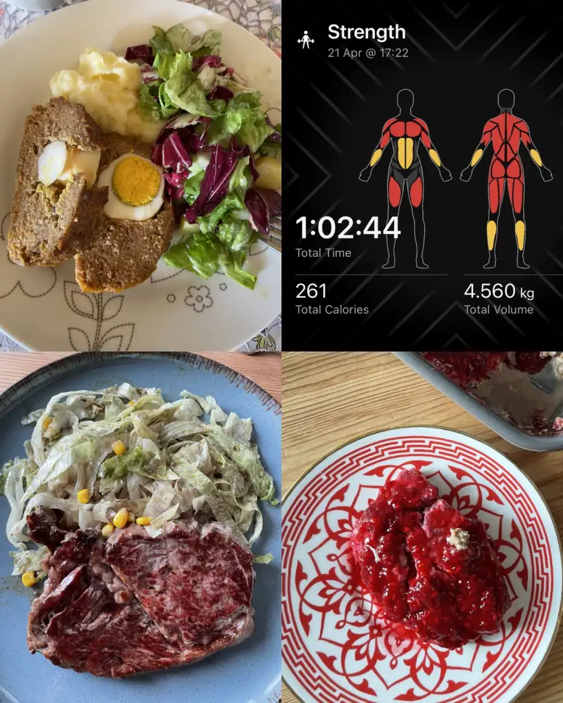 Arada süt, yarım muz, 8-10 fındık ve tarçınla bi içecek yaptım. Sabah 2 yumurta, 1 dilim peynir, bol yeşillik, 1 dilim ekmek ve çeyrek avokado yedim.