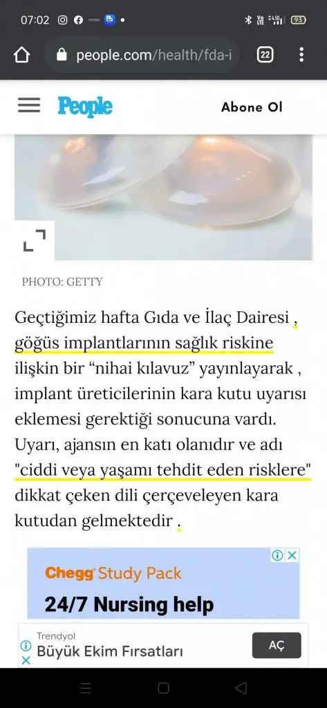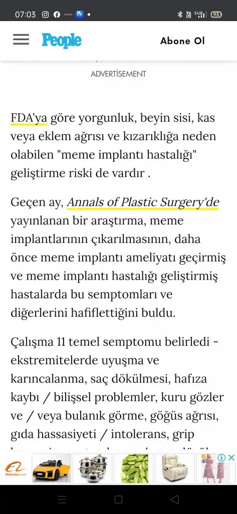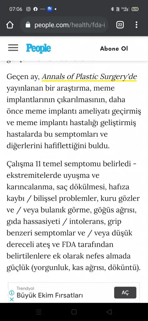 Merhabalar,Binlerce kadın risk altındayken çok geç yapılmış bir açıklama..Lütfen Slikon yaptırmadan önce Gögüs İmplant Hastalığı hakkında araştırma yapın.Slikonu olan kadınlar ufak tefek hastalıklarınızı gözardı etmeyin ilerde çok daha büyük sorunlara yol açmadan önleminizi alın..
