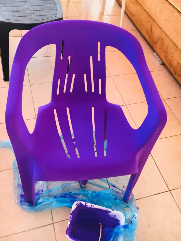 10 lira ya internetten aldığım boya ile eski rengini güneş almış balkonda Kİ plastik sandalyelerimi boyuyorum ve sonuç bu