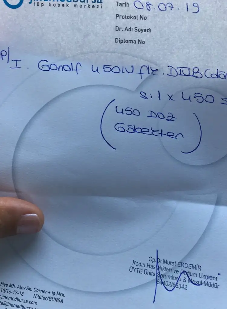 Merhaba yeni tüp bebek tedavisine başladım 3 ay biestron,folikasit kullandım şimdi iğnelere başladık bu süreç zor bir süreç bu yolda olan herkesin allah yardımcısı olsun iğneler çok pahalı doktorum gonal f 450 lik yazdı ve dozumda 450 elinde olan arkadaşlarım cüzi bir ücretle vermek isten olursa çok sevinirim Bursada ikamet ediyorum isteyene reçetemi gösterebilirim