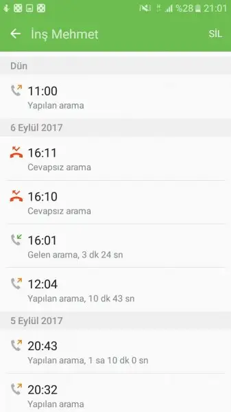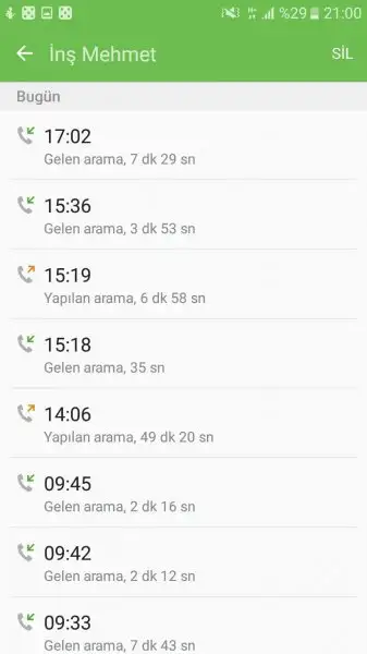 Arama kayıtlarını hiç silmemiş bi kaç tane daha böyle inş kenan inş mustafa falan vardı onlarla da sürekli konuşmuş ama onlar gerçekten erkek mi kiz mi bilmiyorum.