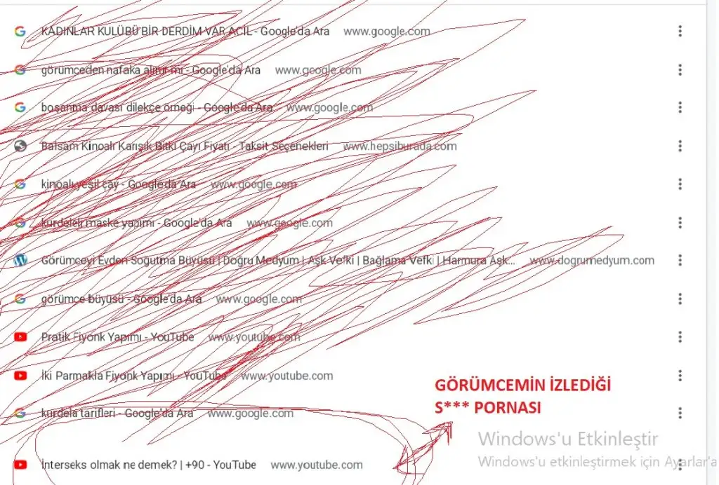 gorumcem porna videolar izlemis youtuben (kırmızı işaretle izlediği şeye aldım lütfen bakın ) kesinlikle ne izledigini acip bakmadim bebegim de bu duruma şahit olmasin diye ama bebegimin basligi gormesi bile bardagi tasiran son hamle oldu
