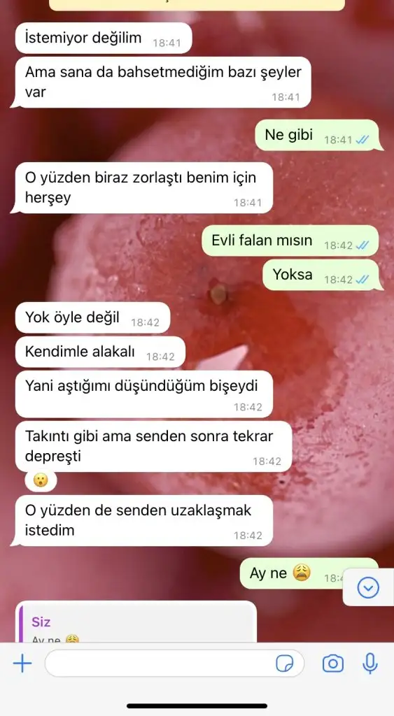 Ama uzaklaşmak istediğini söylemiş. Belki direkt görüşmek istemediğini söyleyemeyen biridir, o yüzden bahane arıyordur.Yokya uydurmaz ki görüsmek istemese söyler direk neden bişey uydursun
