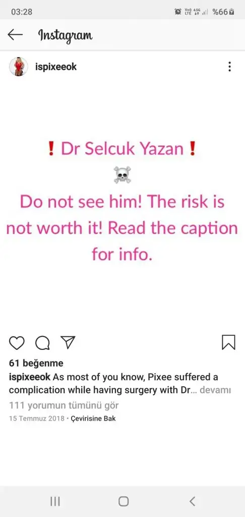 Okumadan karar verme Dr S.Y için hiç olumlu konusulmamisMerhaba arkadaslar ben de "cat eyes surgery" denilen badem goz ameliyati olmak istiyorum. Gozlerimin rengi gercekten cok guzel, ama goz kapaklarim sarkik ve goz uclarim asagi dogru bakiyo ve guldugum zaman da gozaltlarim cok torbalaniyor. Her neyse, su Selcuk Yazan'dan bahseden arkadastan sonra instagramini inceledim doktorun.cok radikal isleri de var,ben dogal sevenlerdenim,ama goz estetigi konusunda cok basarili buldum.
