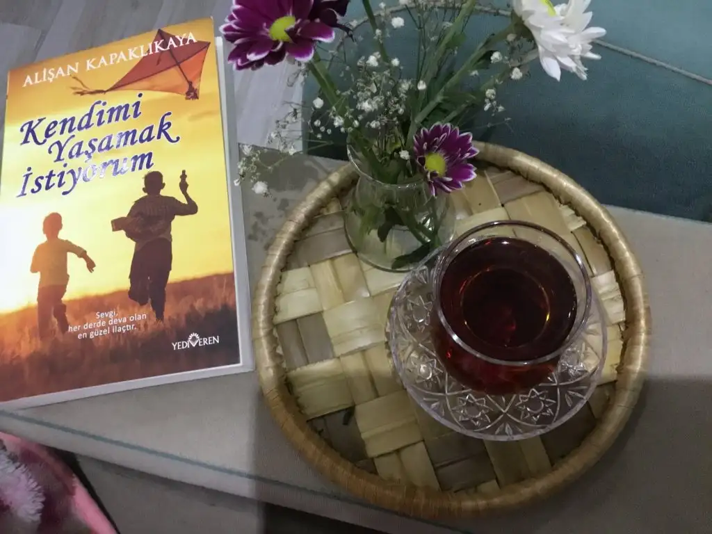 Fırsat buldukça 2 3 sayfa okurum buna dün gece başladımAy ne güzel, kitap ve çay keyfihuzur görüyorum