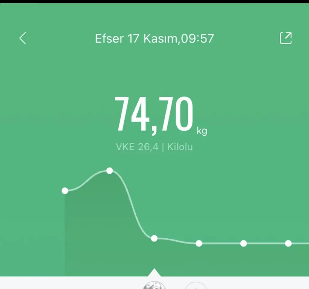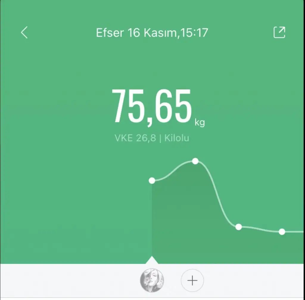 Düne göre eksisin, cumaya göre nasıl acaba, yeni tartın harika bir şeye benziyor tekrar hayırlı olsunKilo bildirimi