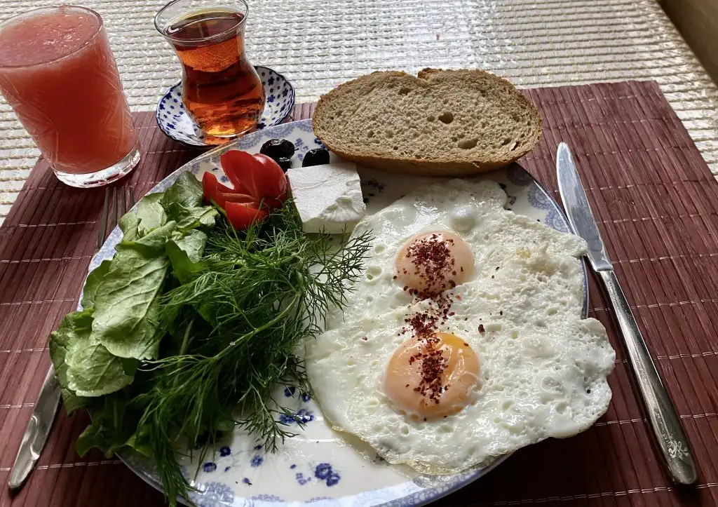 Bu sabahki menüm 1 yumurta 1 wasa 1 salatalık minicik peynir