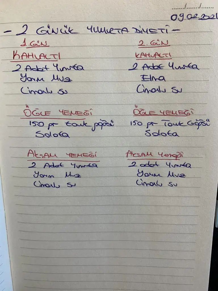 Haftasonu evde insan kaçamak yapmak istiyorum demii :)) Bende öyleyim haftasonunu firesiz atlatırsak hafta içi de yapmayızz kesinlikle.Günaydınevet liste hazır 3. Öğün yapmam belki çünkü 12 gibi kahvaltı yapıyorum, 3 öğün zor olur ama 2 öğünü liste gibi olacak, haftasonu kaçamak yapmazsam hafta içi hiç yapmam herhalde