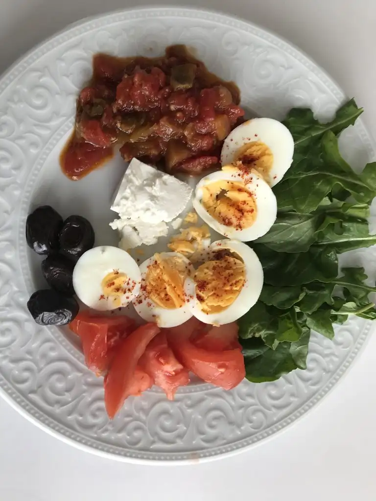 Bol salata ile çok güzel bir menü bence şimdiden afiyet olsunEvdekiler yumurta haşlamasını pek sevmedi.fazla haşlamışım.neyse iyi oldu.akşama 2 haşlanmış yumurtam var.onlarla salata yapmalı .azıcık da yemek ve ayran