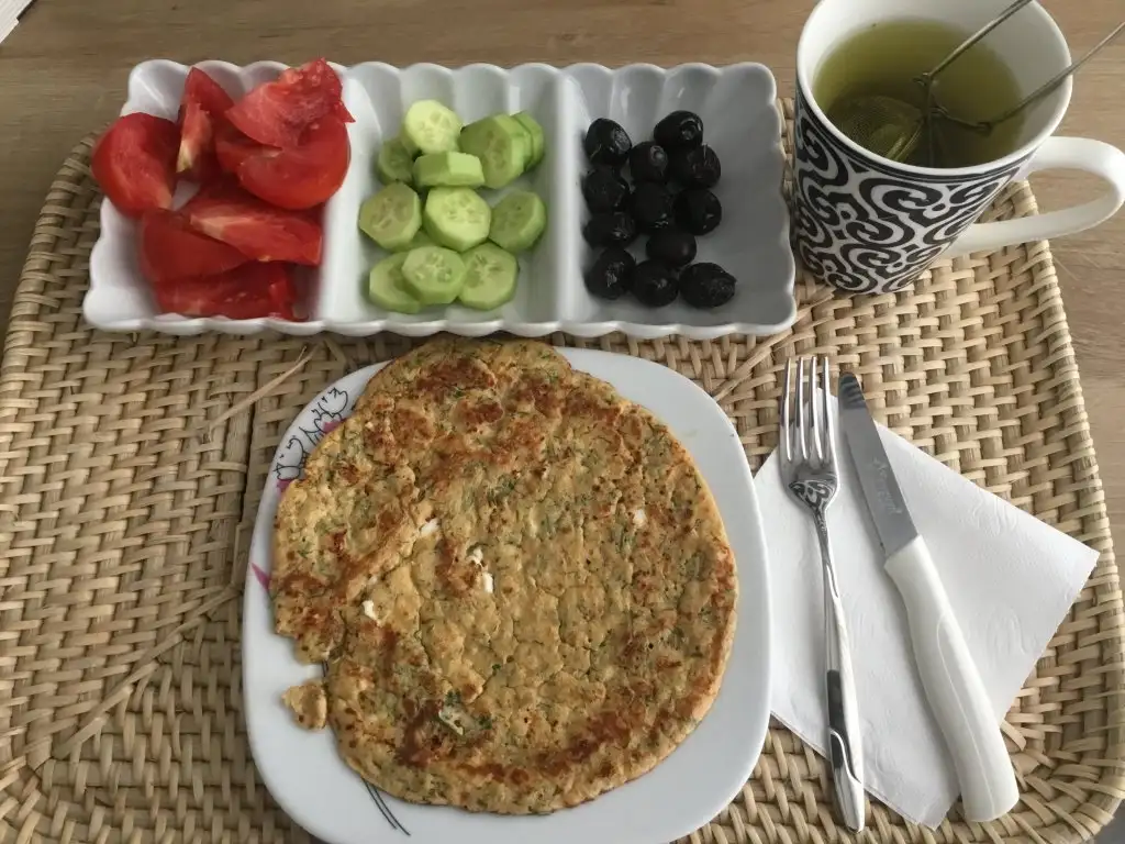 peynirli,dere otlu,yulaf kepekli omlet ve kekik çayım