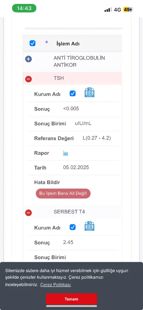 Kan testinde TSH olarak olan tiroit yüksek çıkmıştı ozaman