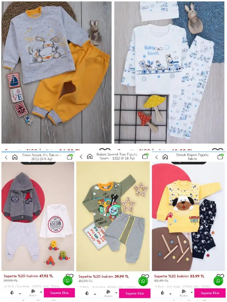 Soyle soylıyım canım sayfa cok yavas ve kategorilerde bazen cıkmıyorr ben erkek bebege baktığımda buldum bazen karıstık biraz ıyıce kurcalamak gerekiyor ben epey bısey aldım 600 kusur odedım bıde ıkız oldukları İcin 2 2 aldım normalde tek cocuk ıcın 300 TL anca tuttu gibi dusunebılınır😬 gecen e bebekten 2 parca bısey aldım 200 TL verdim oyle olunca bu sayfa bana uygun geldi ben de aldıklarımı tek tek ceketim toplu cekmedım bırlestırıp tek foto yapayım atarım bak