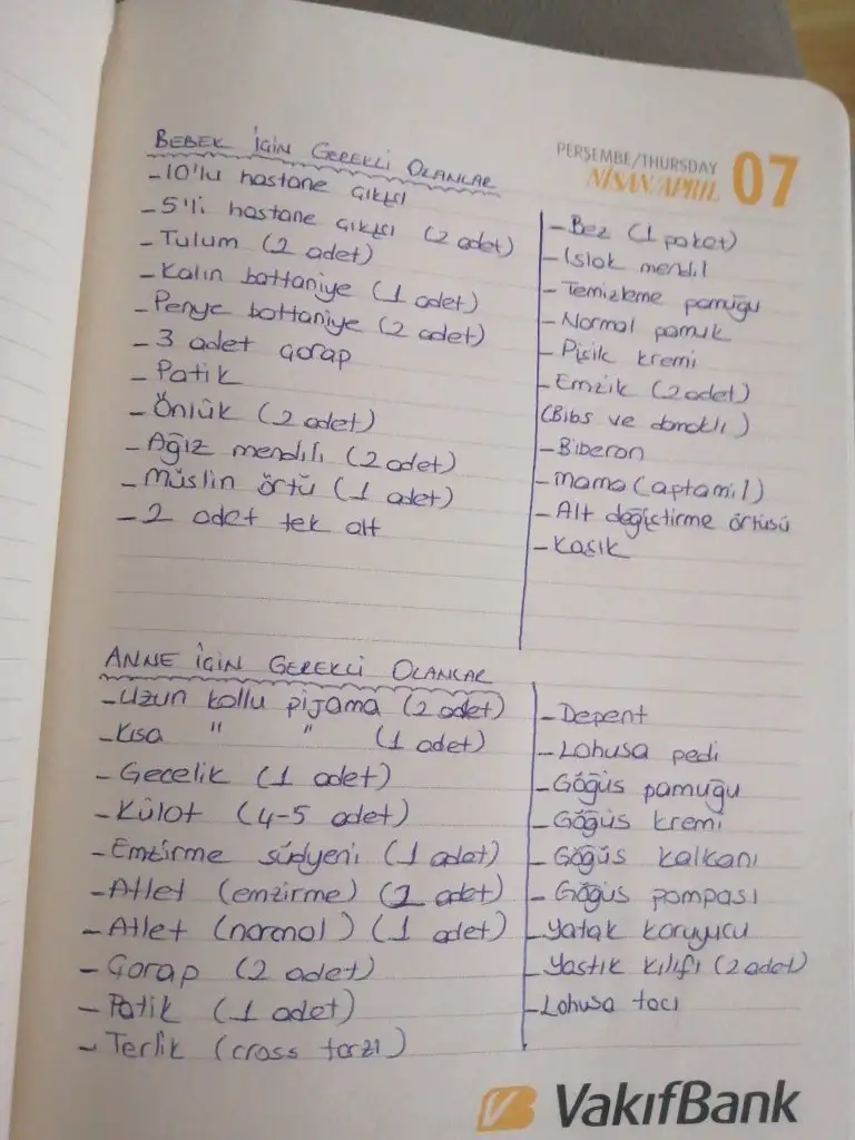 Kursun kalemleri sonradan ekledım canım soylenenlere gore sut saklama posetını de bugun aklıma nefesten sonra geldi eger bebekler kuveze girerse diye belki bizde verırız sut diye onu da ekledim bı kac tane koydum cantama bende artık ınsallah sızede fıkır olur fazlası olsun eksik olmasın diye elimden geldıgınce fazlasını koydum azını koymadım eksik gordugu olursa banada fıkır verebılırsınızYaa bulamadım ben listeyi ararmısın rica etsem