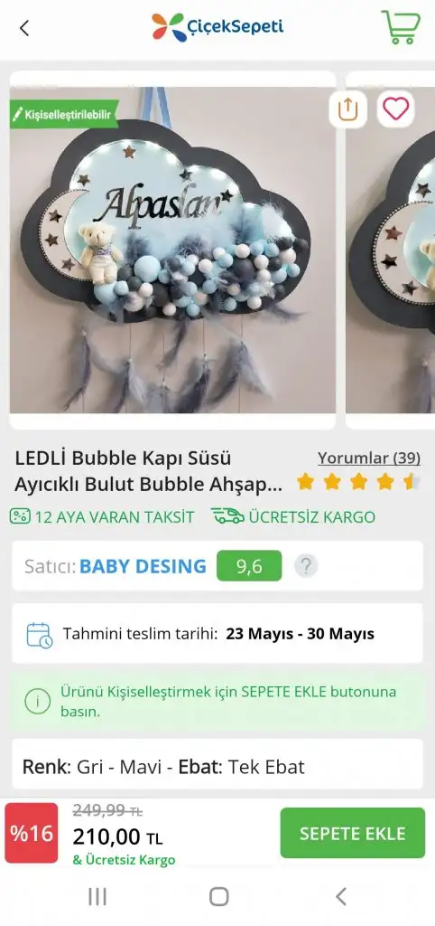 Zevkler aynı kuzum bende geçen gün bu kapı süsünu işaretledim güzel geldiyse bundan alayım cikolatalarda çok iyi gorunuyo saol canımCanım link olmadı ekran görüntüsü aldım