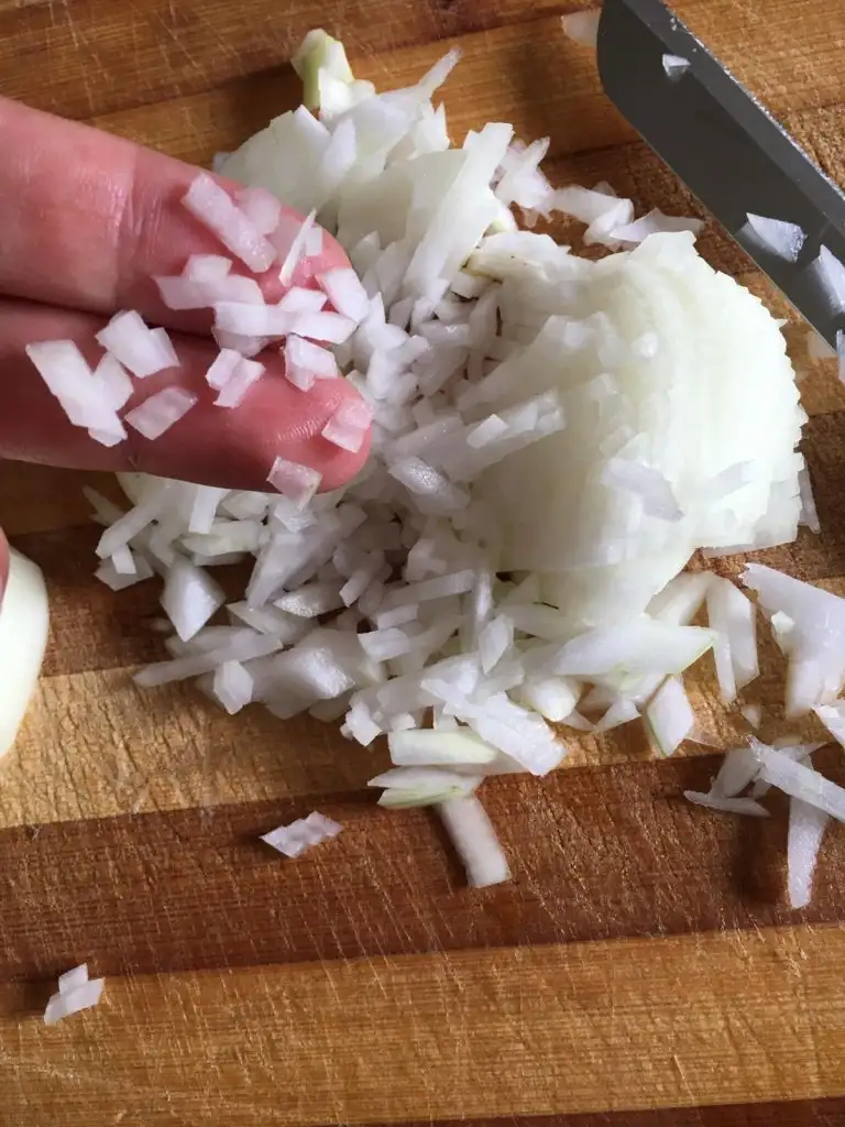 Soğanımızı soyup, minicik minicik doğruyoruz.