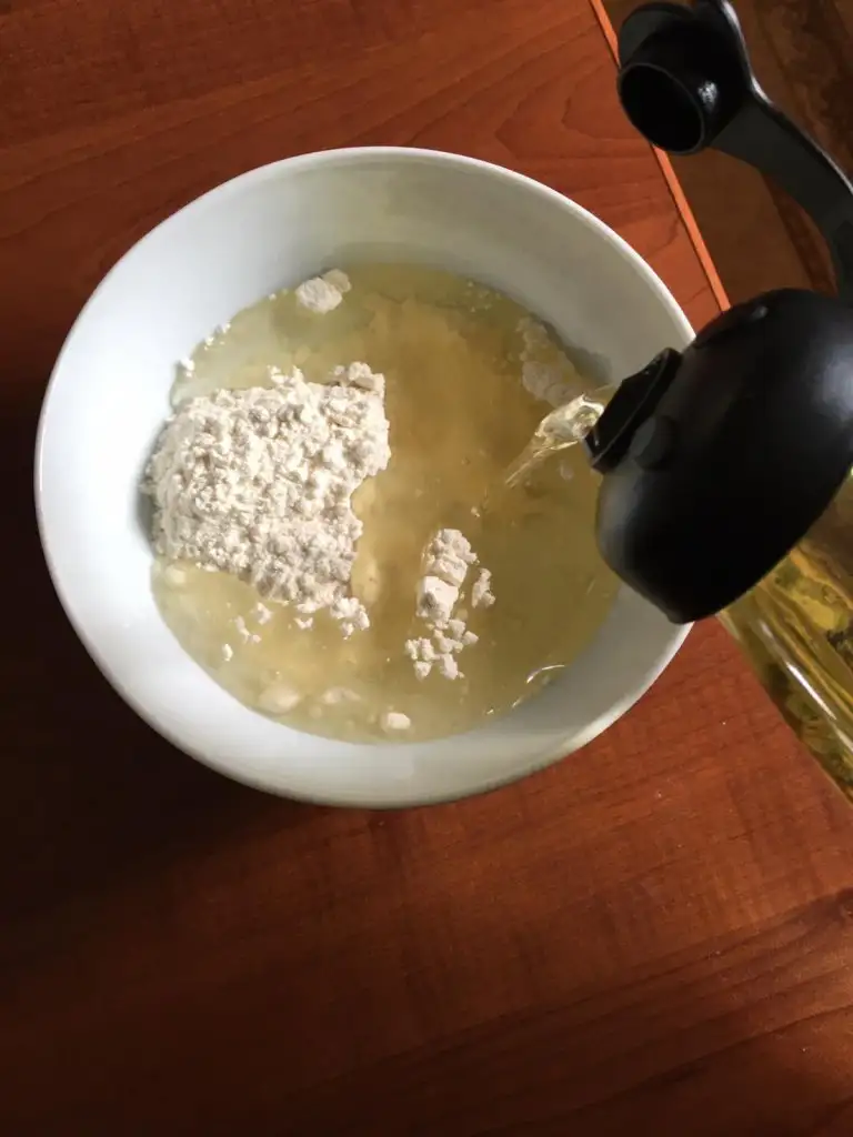 Un ve 1 çay bardağı sıvı yağı karıştırıyoruz.