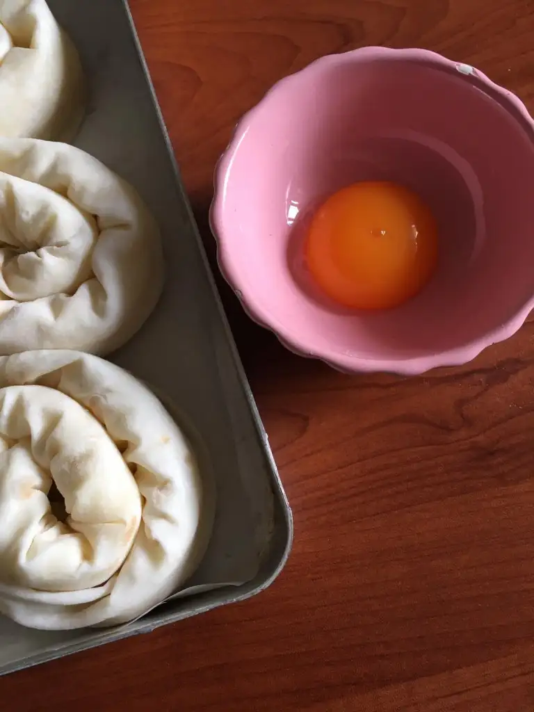 Üzerine yumurta sarısı sürüp, 200 derece önceden ısıtılmış fırında, altın sarısı renk alana kadar pişiriyoruz.