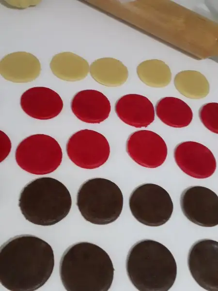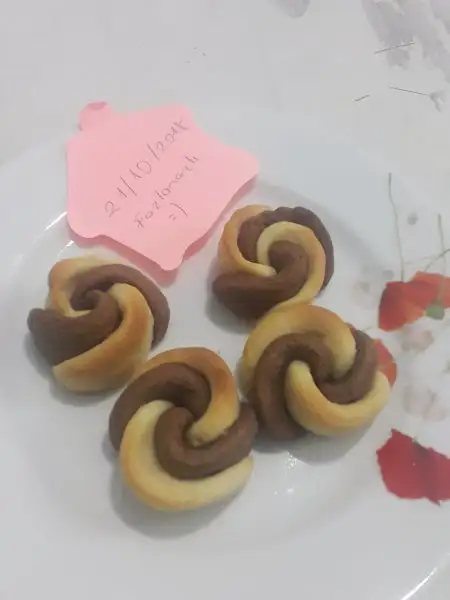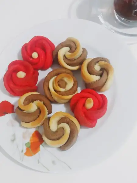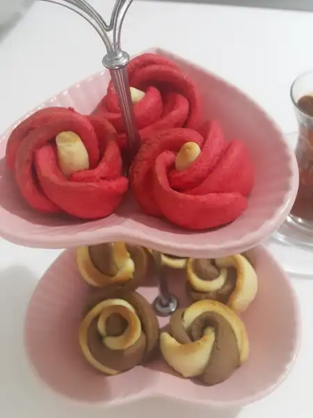 yuvarlakları yarım şekilde üst üste gelecek şekilde 4 tane dizdim ve rulo yapıp bıçakla kestim. tepsiye dizip 160 derecede 15 dk pişiriniz benimki fazla pişti malesef oylama bitmeden yeniden yapıp fotoğraf eklemek istiyorum birazda yayıldı kusura bakmayın