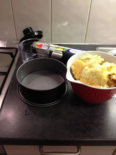 - Kekimizden bir mikdar alip kaliba koyduktan sonra iyice bastiralim (kekin kalinligi normal bir pasta taban kalinliginda)