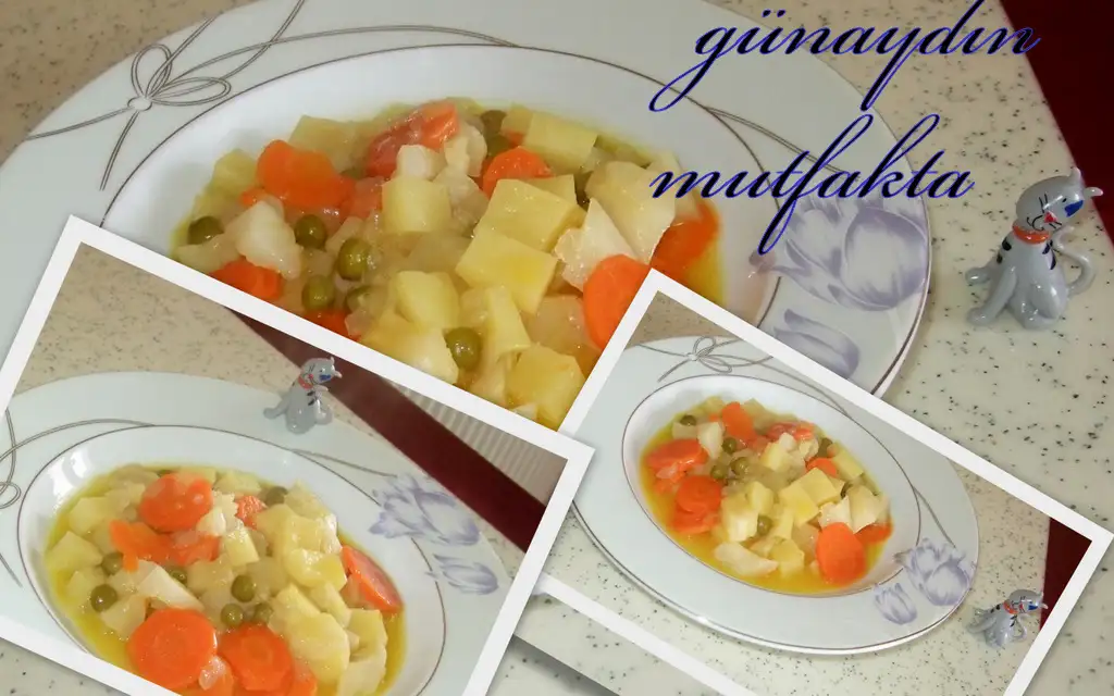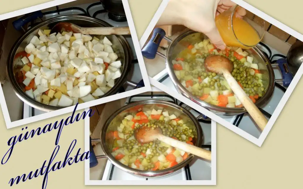 onun ardından küp küp doğranmış patateslerle suyunu süzdüğümüz kerevizleri tencereye alıp