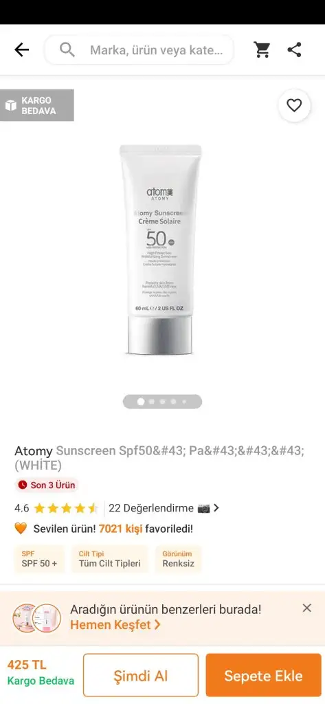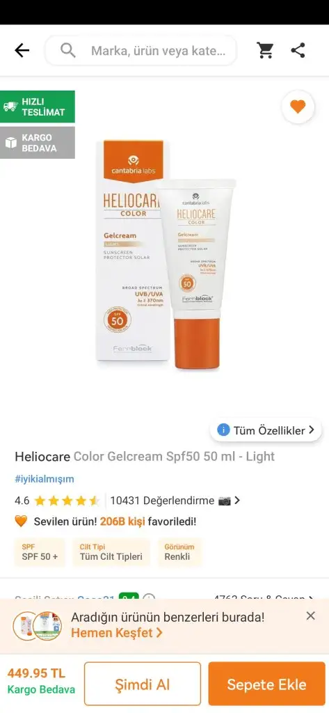 Evet. Ten renginize göre seçebilirsiniz. Renksizi de var yine spf50Merhaba heliocare krem bu görseldeki mi? Çok güzel yorumlar var.