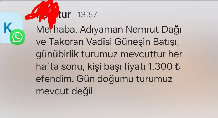 simdi hic usenmedim nemrut gundogumu turu yazip karsima cikan ilk numaraya mesah attim 1300 dedi