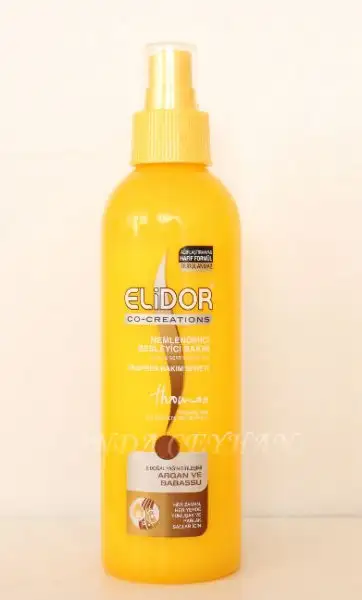 sonra da elidor un bakım spreyini saç uçlarıma uyguluyorum
