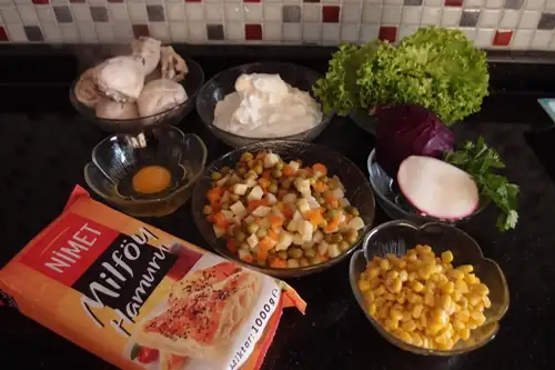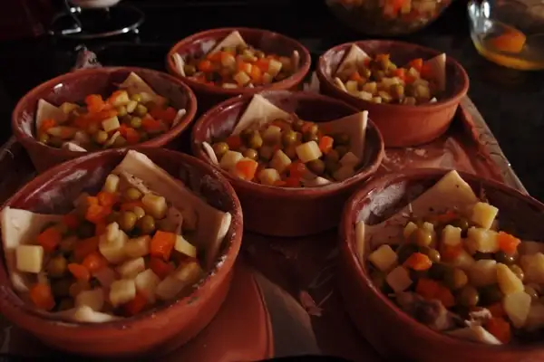 Yemeğimin adı Güveçte Milföylü Tavuk ve Garnitürlü Meze- bu yemeği bir yerde görmedim malzemeleri bir araya getirip bir şeyler denemeyi her zaman sevmişimdir.Buna benzer yemeklerin var olduğunu biliyorum