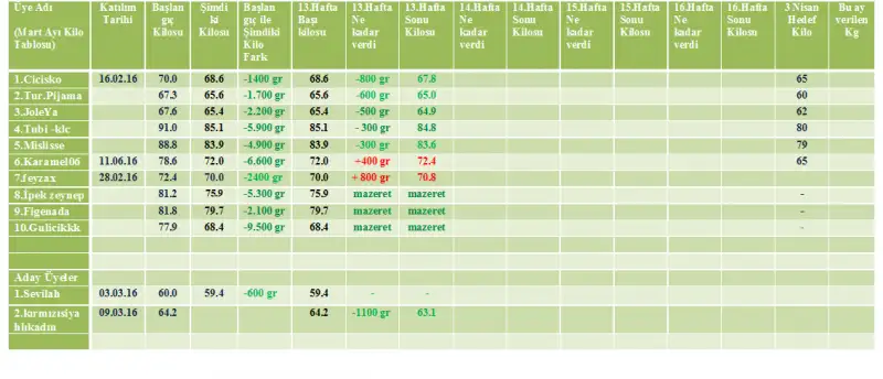 iyi akşamlar arkadaşlar tabloyu hazırlamışken en azından buraya ekliyeyim dedim.Yemyeşil bir tablo hazırladım bu sefer :) Bu haftanın birincisi cicişko arkadaşımız olup kendisini canı gönülden tebrik eder başarılarının devamını dileriz.