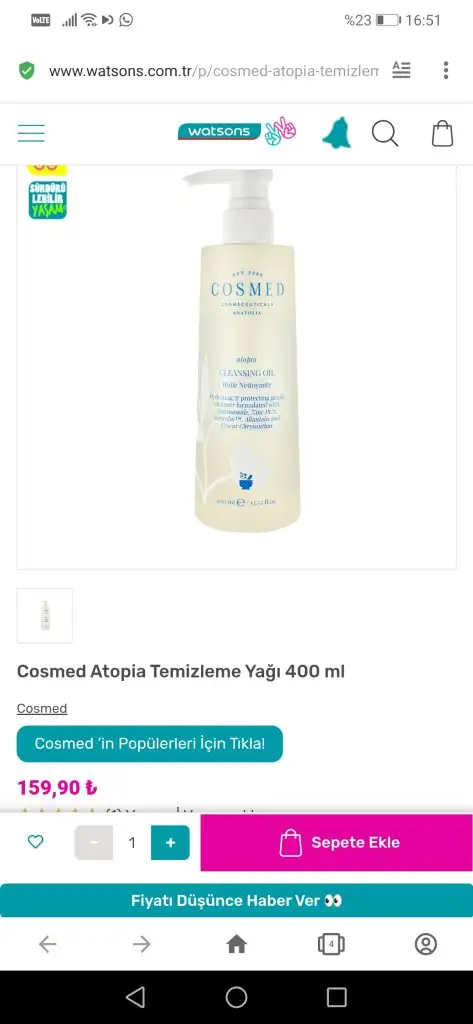 takip etmek lazım bazen de netde yarı fiyatına düşüyor ben hem mağazadan hem netden sık sık kontrol ediyorum hangisinde daha ucuzsa bitmeden azaldığında stokluyorumÇelenesler nette pahalıymış ben neredeyse yarı fiyatıma aldım gratisten watsonstan. Oralara bakın