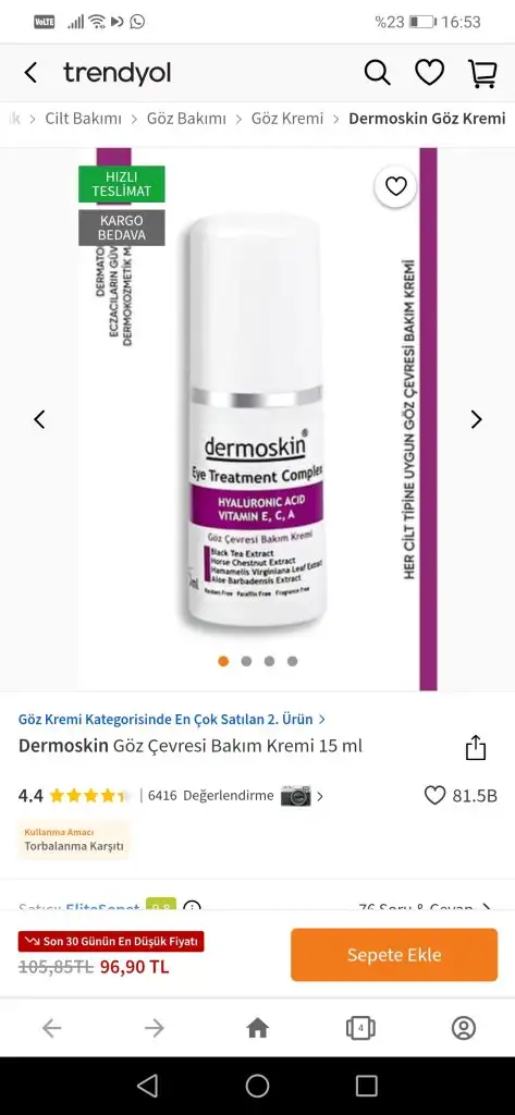 Dermoskin Göz Çevresi Bakım Kremi | Yaşlanma ve Kırışıklık Karşıtı | Göz Kremi | Hyaluronik Asit | 15 ml yorumlarını inceleyin, Trendyol'a özel indirimli fiyata satın alın.www.trendyol.com