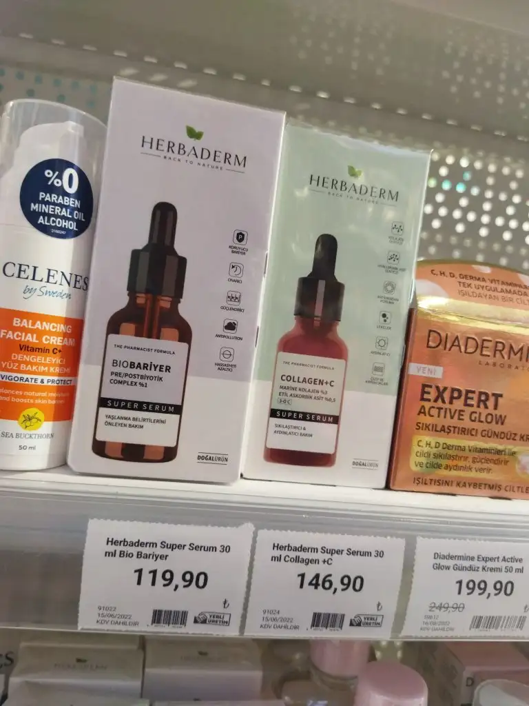 sadece herbaderm c vitamini serum kullandım . türk malı . ve saf c vitamini olanı almıştım yalnız. hatta ikinci kez de aldım. çok beğenmiştim . memnunum.