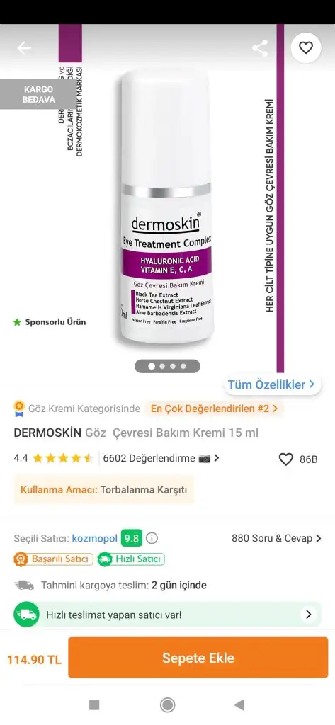 göz kremini internetden sipariş edeceksen satıcı ya ecza deposu olsun ya orjinal satıcı olsun dikkat et çakma ürün olmasın