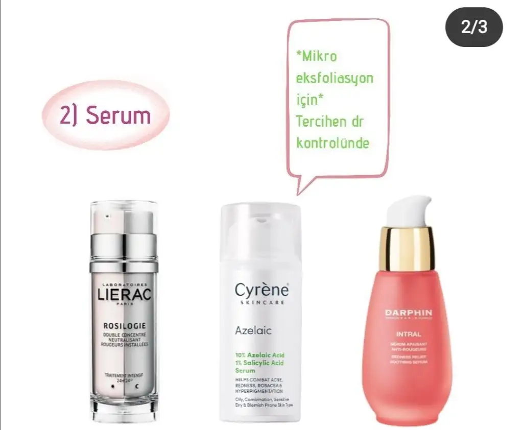 Ordinary olanları gösterdim aslında. Azeleik asiti her gün diğerlerini gün aşırı kullan dedi. Cosrx yanımda değildi onu görmedi ama, onu zaten çok önce almıştım. Muhtemelen o tahriş ediyor olabilir. Güneş kremi de la roche kullanıyorum dedim bişe demedi, o yüzden kullanmaya devam ettim. Bariyer için ne yapmam lazım, centella falan almıştım yeterli gelmiyor demek.