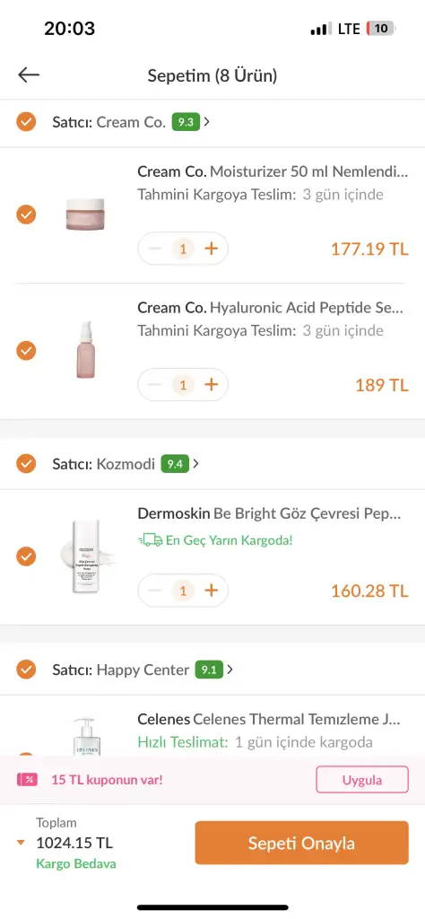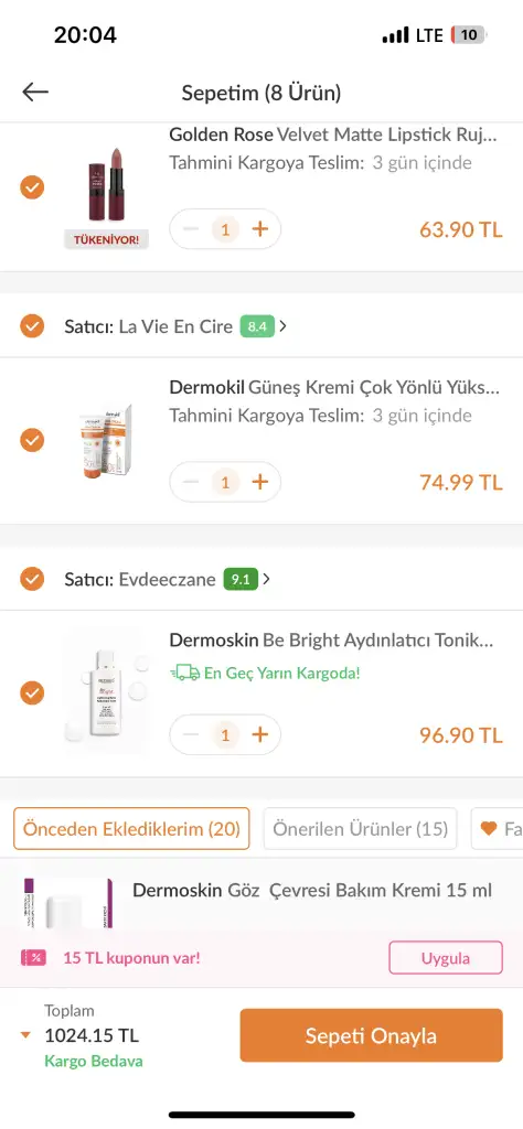 Söyle hi liste yapmıştım ve sadece elimde kalanlar bunlar serumları yedim heralde düzensiz kullandım birde cvit bozuldu vucudumada sürdüm filan 🤣