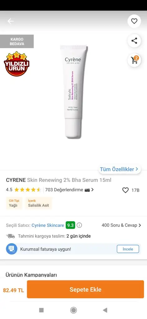 Salisilik 21 e düşmüş mü yineAslında yüzün çok daha iyi durumda sivilcende sönmüş. Yine de almak istersen cyrene nin salisilik asitli bir kremi var küçük ama fiyatı 21 lira gibi bişeydi. Sadece sivilcenin üstüne sürebilirsin. Cica yerine centella içeren bir ürün daha iyi olabilir. Cica cilt tipine uyar mı emin değilim.