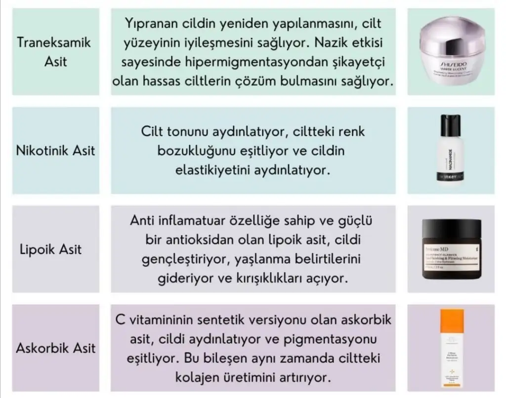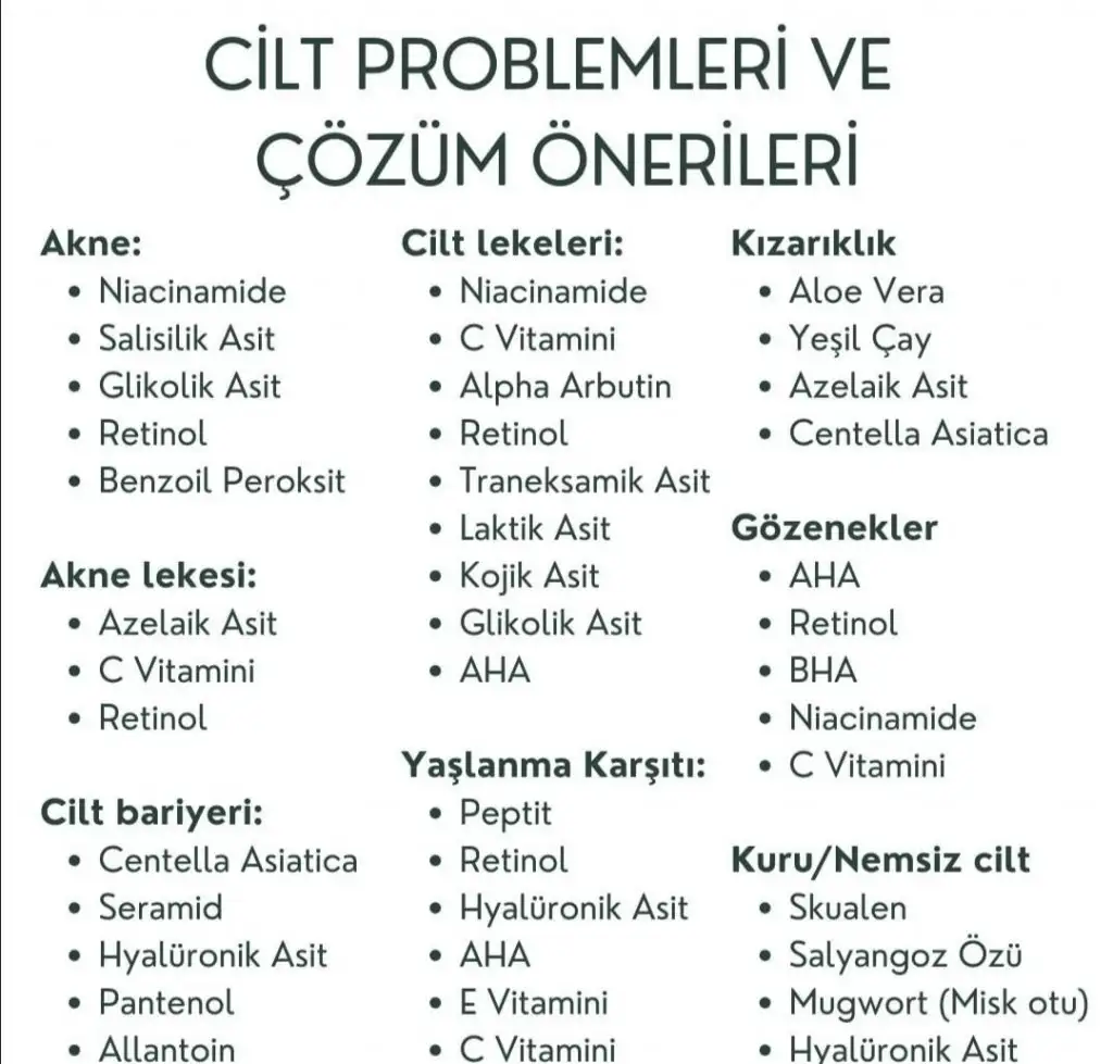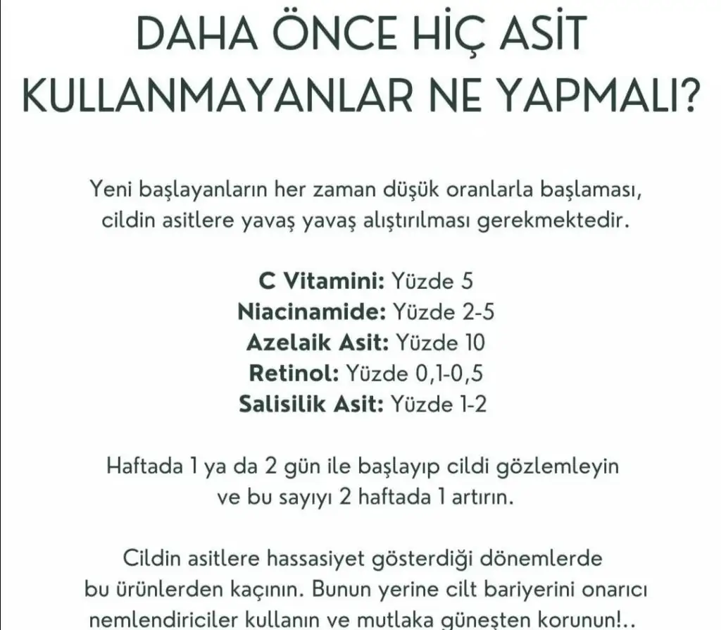 Bana da bi el atın hanımlar. Son 1 yılda cildim kurumaya başladı ve ne yapsam nemlendiremiyorum. O kadar kuru ki kremi veya yağı vücuduma yediremiyorum. İlk sürdüğüm yerde kalıyor resmen. Vücut için bioderma, hindistan cevizi yağı, bir oil kullandım ama yeterli olmadı. Creave fiyatı uygun diye merak ettim bir deneyeyim dedim o da yeterli nemlendirmedi. Duşta biodermanin duş jelini kullanıyorum. Yüzüm de aynı şekilde. Hiç kırışığım yoktu ama kuruduğu için baş göstermeye başladı. Göz altına vichy liftactiv supreme kullanıyorum. Gündüz vichy aqua thermal kullanıyorum ondan memnunum. Gece ise vichy liftactiv collagen specialist kremini kullanıyorum. O da çok bereketsiz çıktı bir daha alacağımı sanmıyorum. İstesem de alamam zaten fiyatları uçtu gitti. Güneş kremini düzenli kullanmama rağmen cildim lekelenmeye başladı. Hassas bir cildim var, lekeye ve sivilcelenmeye meyilli. Güneş kremi la roche ve biodermanin 100 faktörünü kullanıyorum. Bahsettiğiniz asitlerden hiç kullanmadım. Cildimi neme doyurmak için ne yapmam lazım tavsiyelerinizi bekliyorum. Bir de lekeler için ne yapmak lazım 🌸