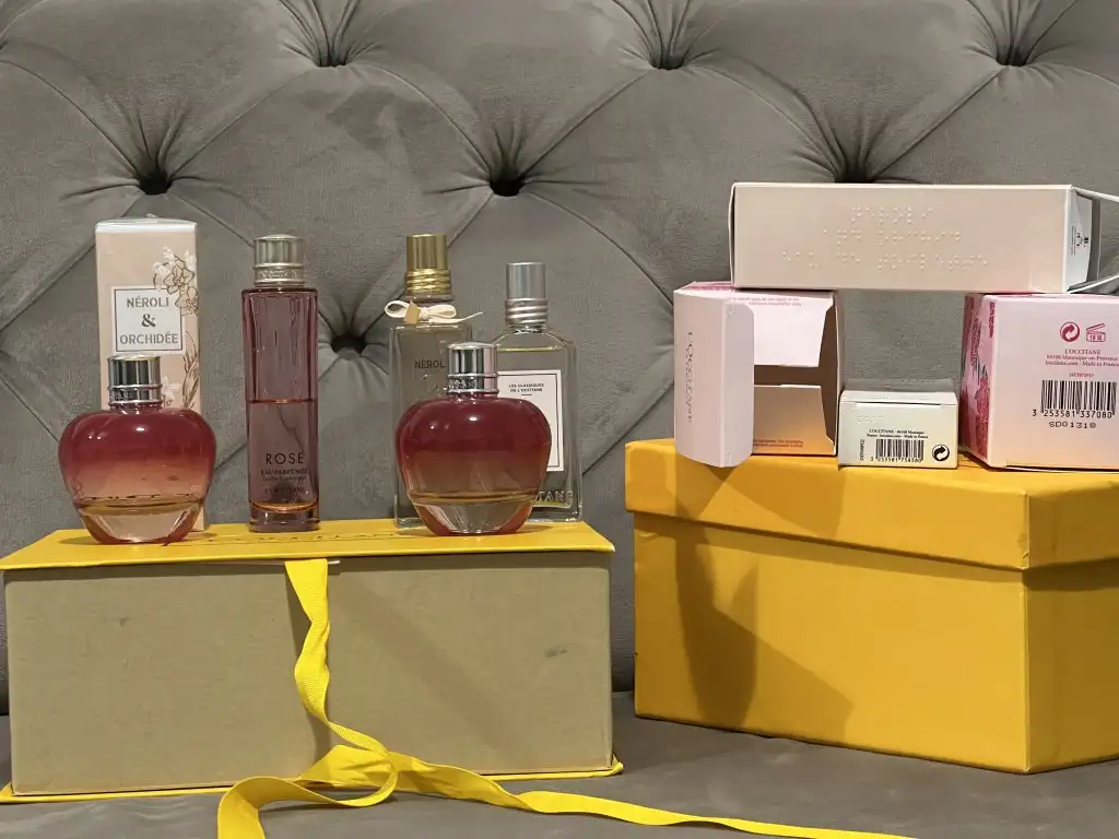 Parfum deyince eriyenlerdenim.L’occitane’nin denemedigim parfumu kalmamistir. Arada klasik markalara (Hermes, Dior, Prada, Guerlain ve Givenchy) kaysam da, elimde muhakkak tutsam da imza kokum L’occitane Peony. (Kirmizi siseler) Bir ara uretimden kaldirdilar ve nihayet klasiklere eklendi. Haliyle eklenince fiyati da otomatikman 2 katina cikti. Onun da yeni sisesi dikdortgene donduz bkz. fotografta sag arkadaki. Su an aktif olarak Rose’u kullaniyorum. Herbae yesil bitti, bu hafta siparis edecegim. Gece kokusu olarak Orkide & portakal cicegini kullaniyorum.