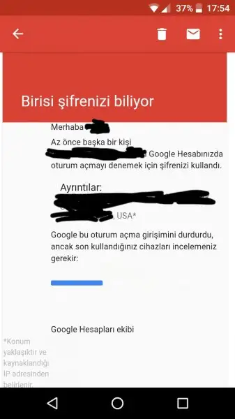 Kardeşimle bir test yaptık o başka yerden bnm şifremi çalmata çalıştı ama tahmin yoluyla yaptık ve bana başka mesaj geldi bu mesaj gelmedi ve anladıgımız adam nu kırma işlemini program la yapmış... şimdi sorum maillerime ulaşmış okunmuşmudur 20 dk. içerisinde?