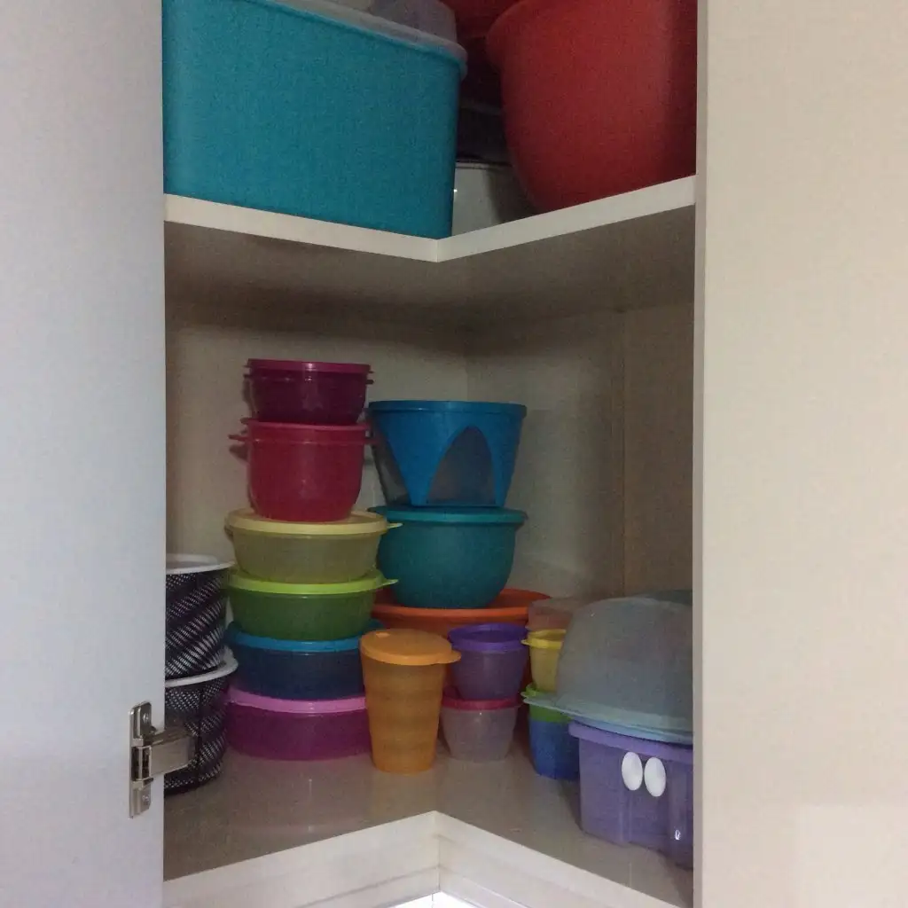 L şeklinde canım alt tarafta öyle Orayı da tencereler için dönmeli mekanizma koydurdum şuan evde Değilim eve geçince atarım sana alt Tarafın fotosunuareser , plastik saklama kaplarını koyduğun köşeli dolabın kapağı nasıl, L şeklinde mi?