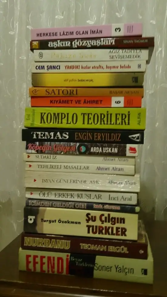 Selam kızlar,artık koyacak yer bulamadığımdan kitaplarımı satmak istiyorum..Şimdilik üstüste koyup çektim resimlerini,umarım okunabilir olmuştur,yine de göremedikleriniz olursa çekinmeden sorun cevaplarım..Yalnız bi kısım kitapları koliye koyup bodruma kaldırmıştım o yüzden yaprakları sararmış ama yırtık falan yoktur...5 TL Eki Görüntüle 1323242
