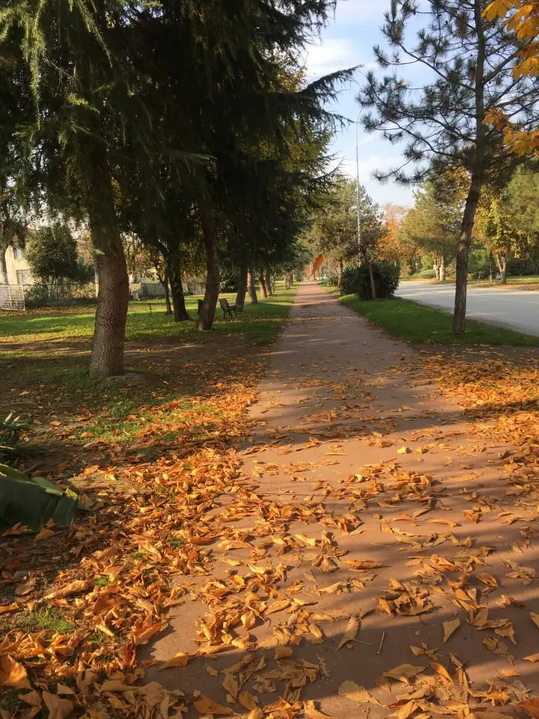 Sonbahar yaprakları ile döşenmiş sokağımdan selamlar