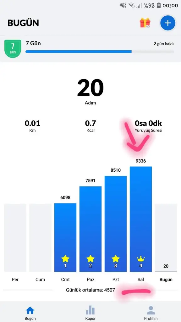 Evde de akıllı bilekliği taktım(bugün geldi kargo) onda da 528 adım oldu
