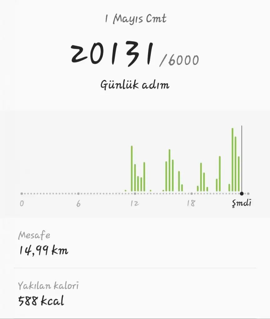 Dün 5 bin adım attım. Bugün yurumeyecegim izindeyim