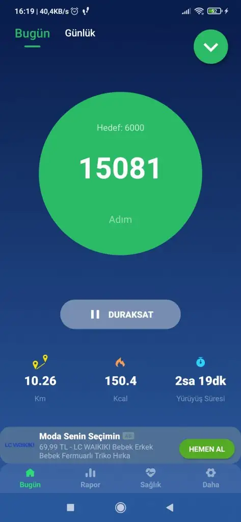 Ahahha yok bugun cok az adim attım ya ütü falan yaptım hareket edemedimSen de bir 3bin yaparsın