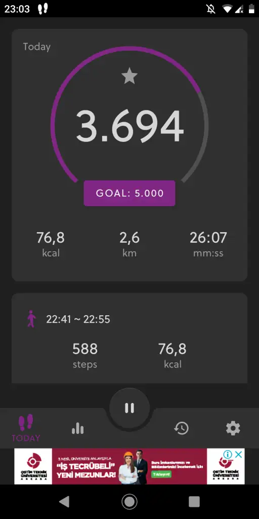 Bende kızdan yürüdüm amaDün şarj makinem iş yernde kaldı adımlarımı atamadım. Bugün ikisini de atarım.10 bin yürüdüm dün de