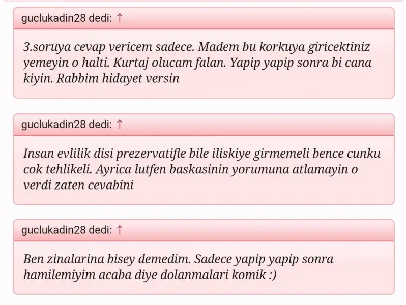 Zina yapıyorsunuz boyle haltlar yemeyin vs minvalinde ki üye kürtaj yaptırdı çok hassas bir konuydu.